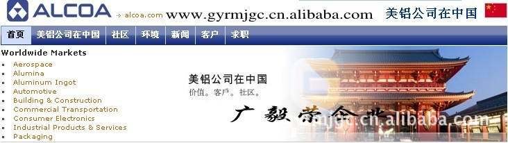 Alcoa is a world leader in the production and management of primary aluminum, aluminum products and aluminum combination, through active and involved in all major aspects of the industry. Alcoa serves aerospace, automotive, packaging, building and construction, commercial transportation and industrial markets, design, engineering, production capacity, Guang Yi Rong Mei aluminum company's enterprise customer. In addition to aluminum products and components including flat-rolled products, hard alloy extrusion, forging, Alcoa aluminum market? Wheels, fastening systems, precision castings, and building systems. More information is available in the www.dxec.com.cn
